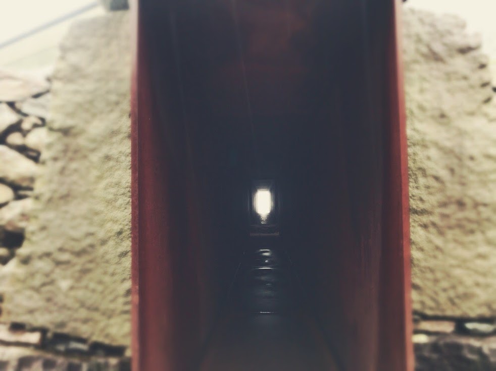 「冬至光遥拝隧道」は冬至の朝のみ光がまっすぐ差し込んで来るという、洞窟のようなつくり。