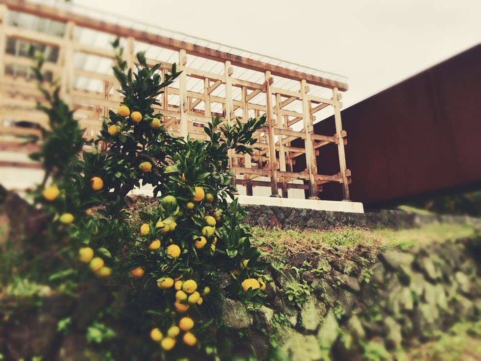 もともと蜜柑畑だったという敷地には、これから季節がはじまる蜜柑がいい色になっていた。