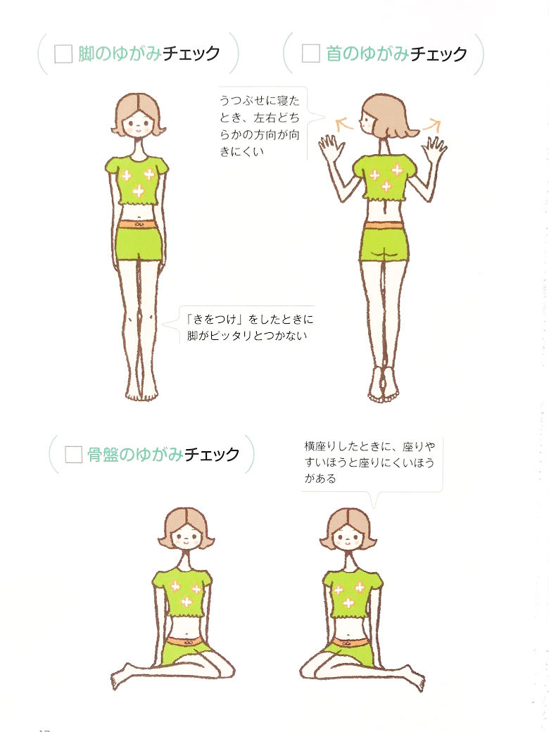 などいろんな症状にあわせて、自分で簡単にできる整体が紹介されています。必要なものは使ってもタオルぐらい。ゆすって動かすというのがポイントかもしれません。